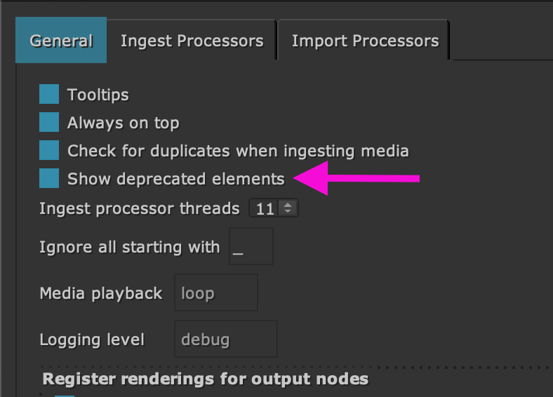 the above mentioned ‘Show deprecated elements’ checkbox in the settings
