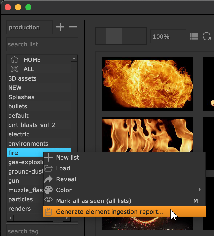Right click a list and choose ‘Generate new elements report…’ from the context menu: