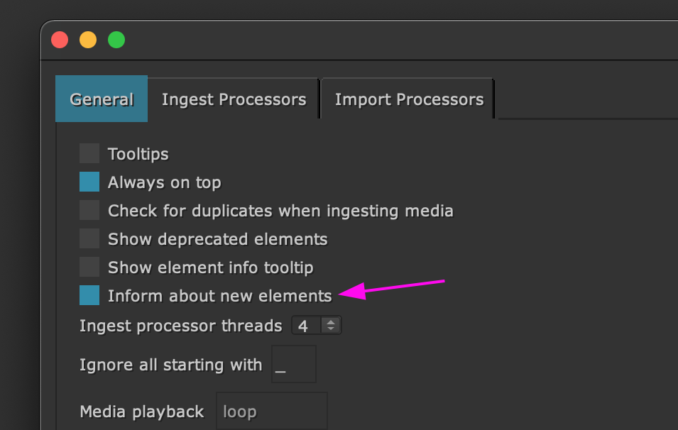 By default, this checkbox is turned off. Turning it on marks all new elements that get ingested from now on with a green border:
