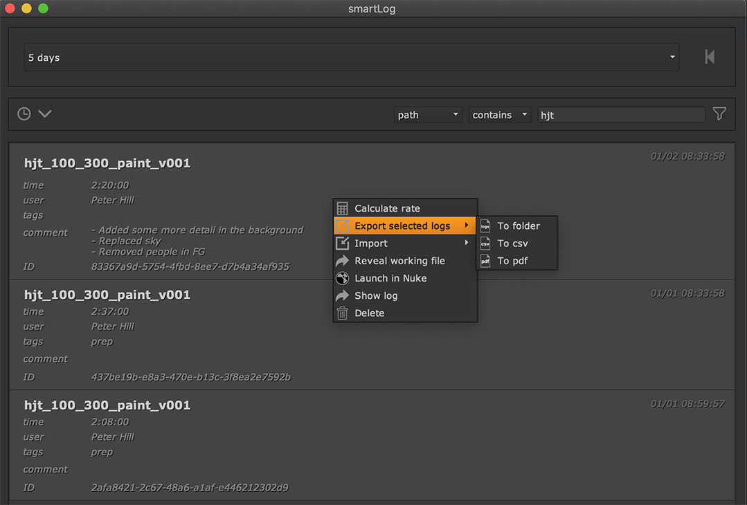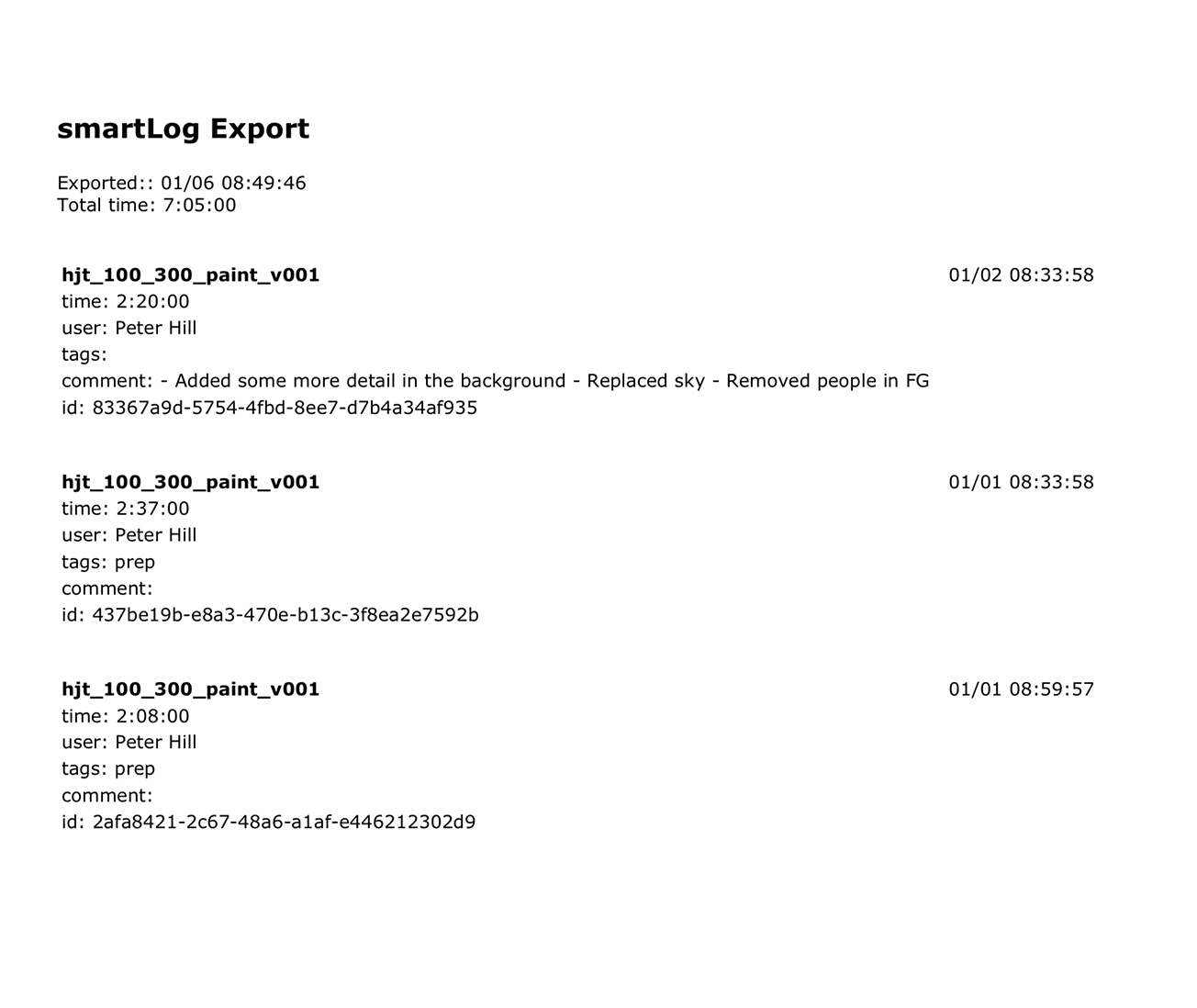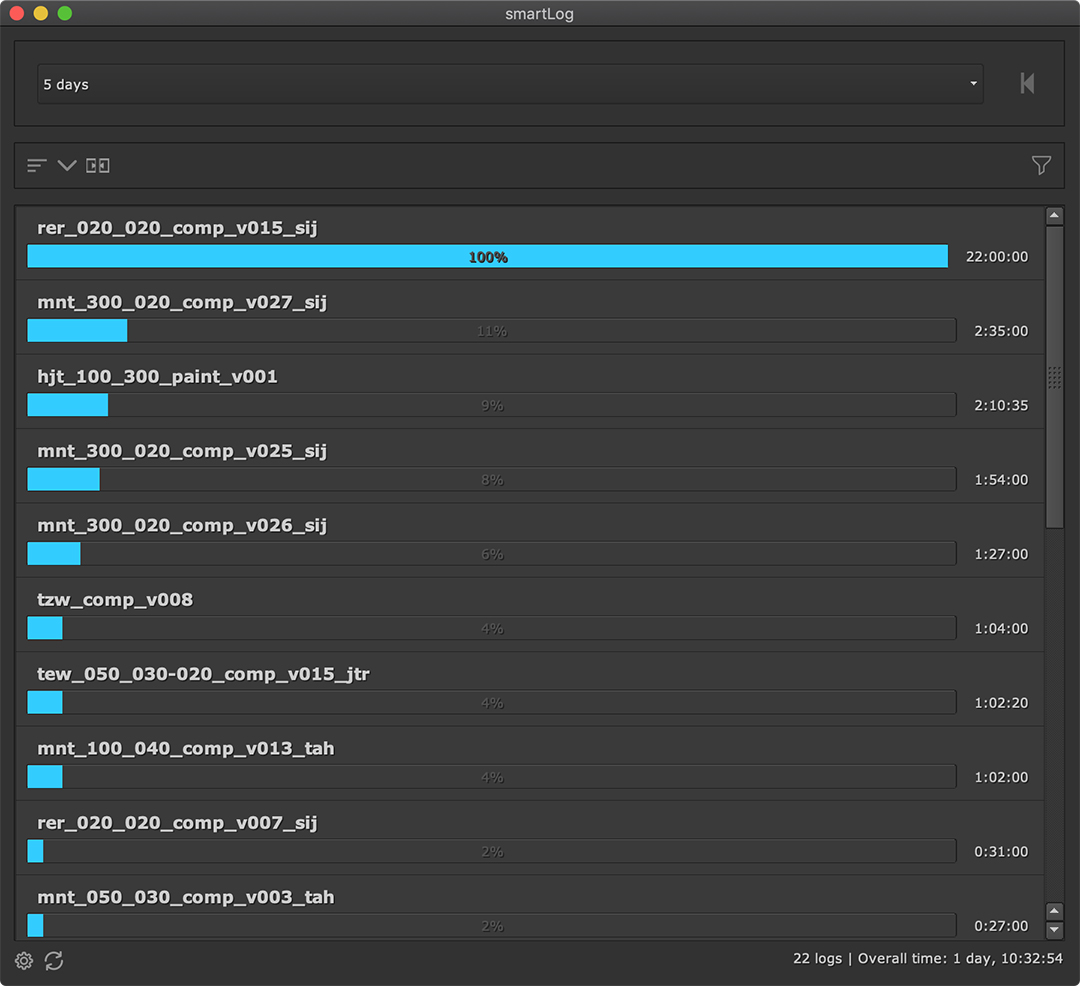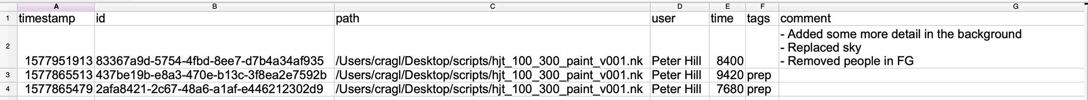 You can however point the logs directory to anywhere else. For instance, you can locate it to a cloud or server that several other machines and/ or users have access to. With that you can write time logs for several users into one directory which makes getting information about who worked on which shots for how long more transparent.