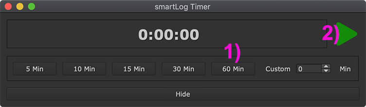 smartLog offers a timer that we can set to any custom interval. It will automatically show a notification after it timed out and play a configurable sound.