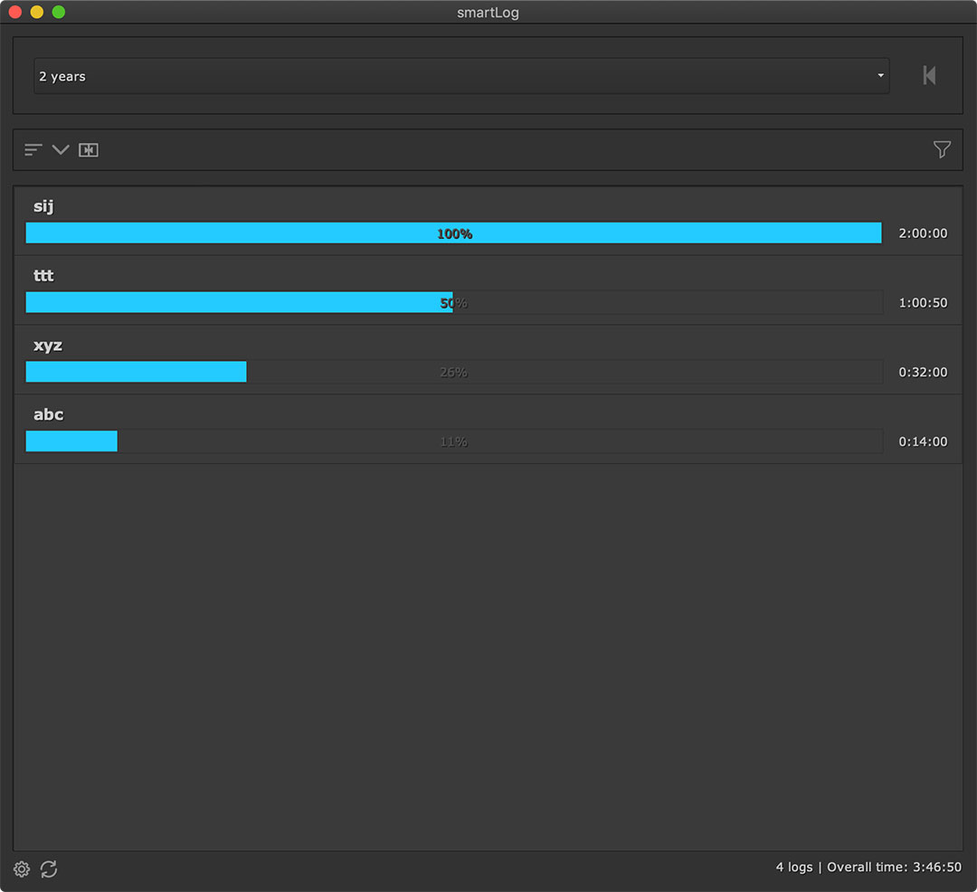 smartLog offer some settings to customize it to your needs. In order to view the settings launch the smartLog main window and click the settings toggle at the bottom left: