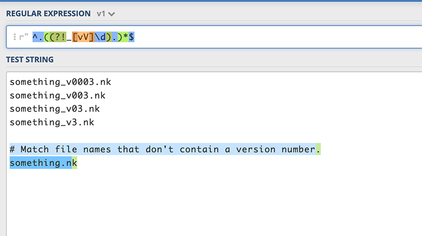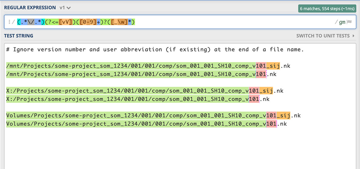 Let’s have a look at the default pattern that ignores version and user information by launching the regex101 link that is contained in the default substitution pattern as seen in the screenshot above: