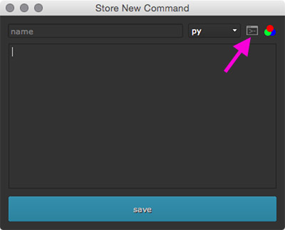 We can launch the Store New Command window by dragging code into the smartScripter main window or by clicking the Plus button in the middle of the smartScripter window. The up coming window looks like the following: