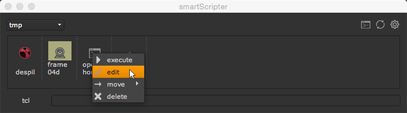 nodes: Nuke node snippet. smartScripter will detect node snippets automatically once you paste them into the command field.