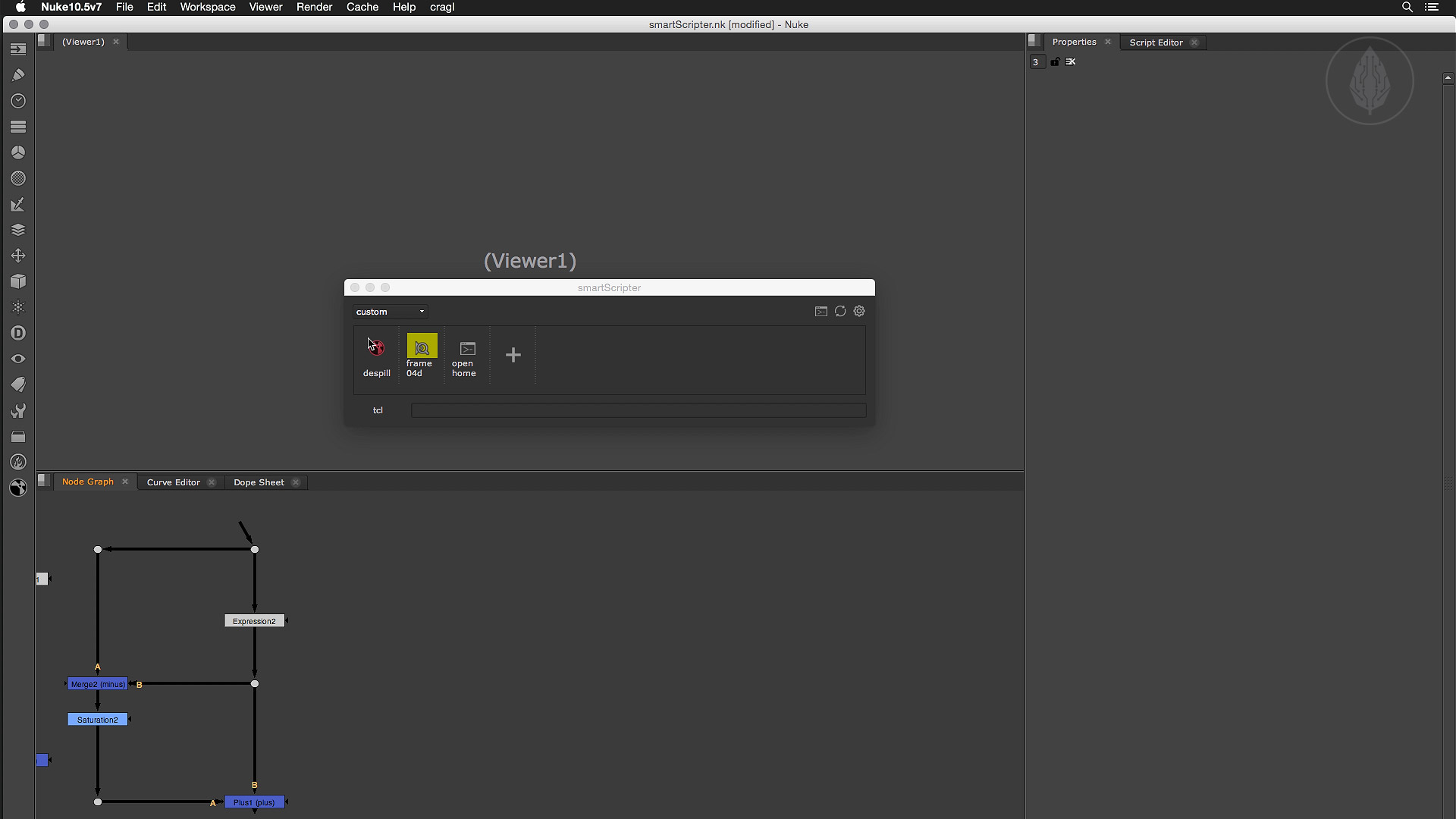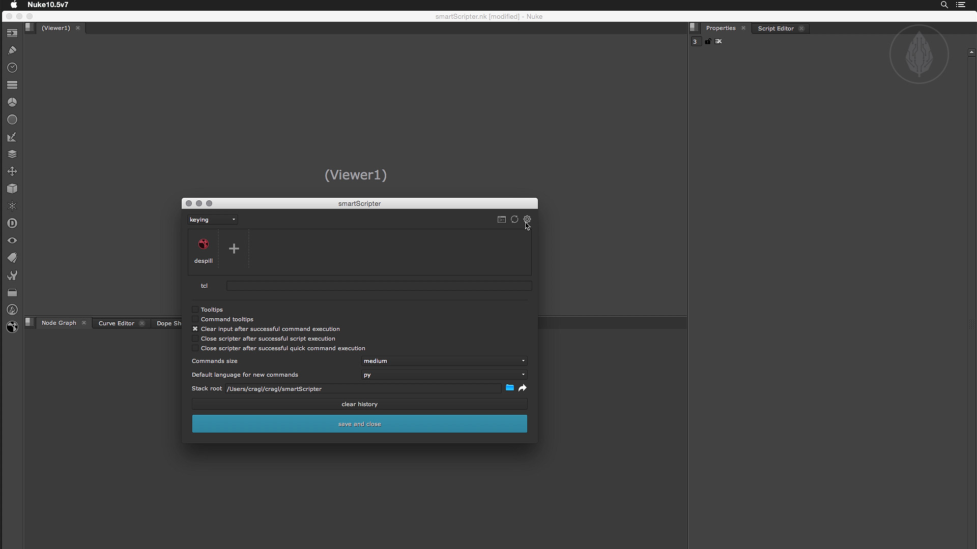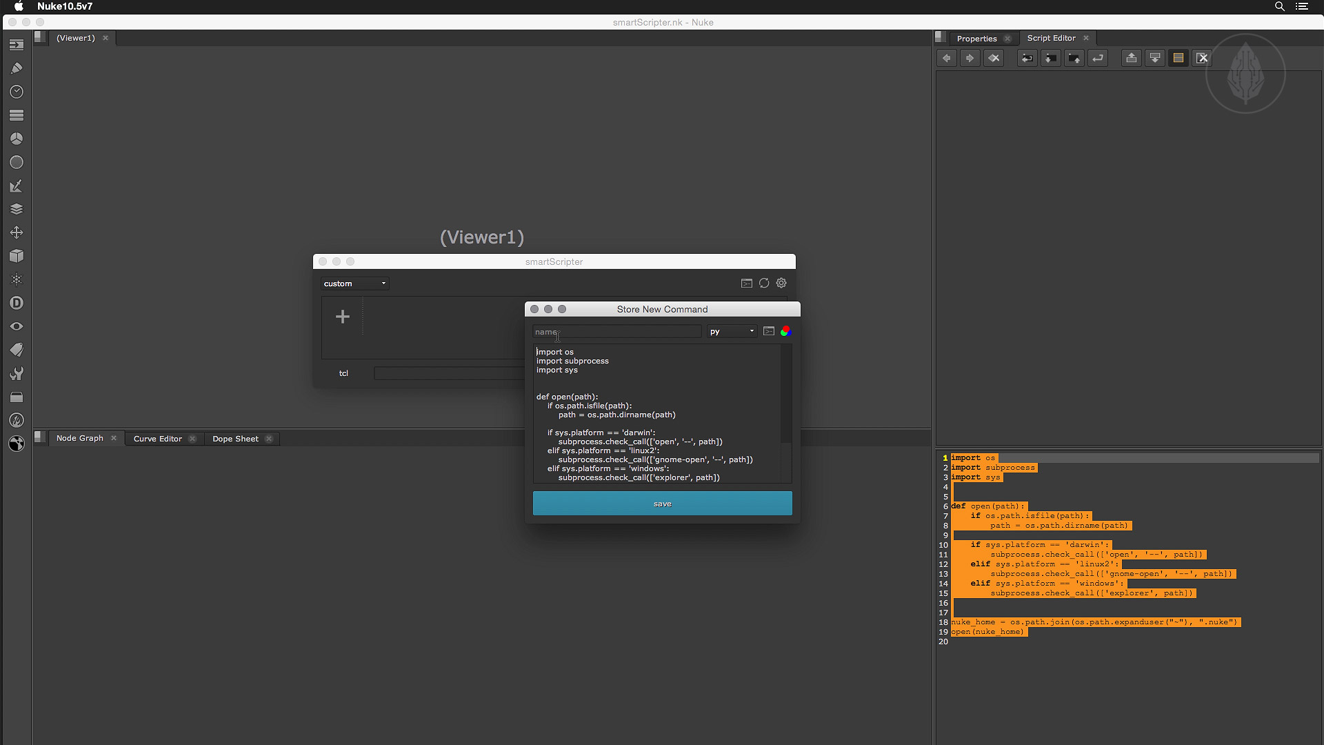 smartScripter provides functionality to quickly store, retrieve and execute python code, tcl code and Nuke node snippets. These can be stored as commands inside smartScripter and are shareable among artists. As smartScripter lets you quickly jump between different scripts, it can speed up your daily work, even if you are just working on your own.