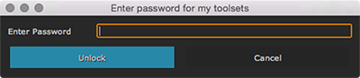 Any change to the shelf (adding new nodes, gizmos, toolsets, removing elements or the whole shelf) requires entering the password.