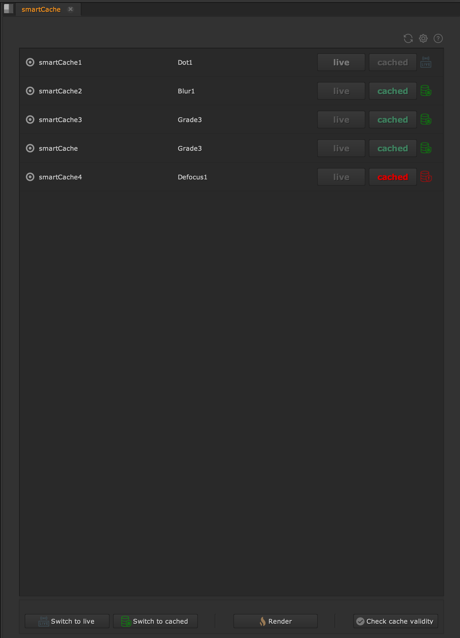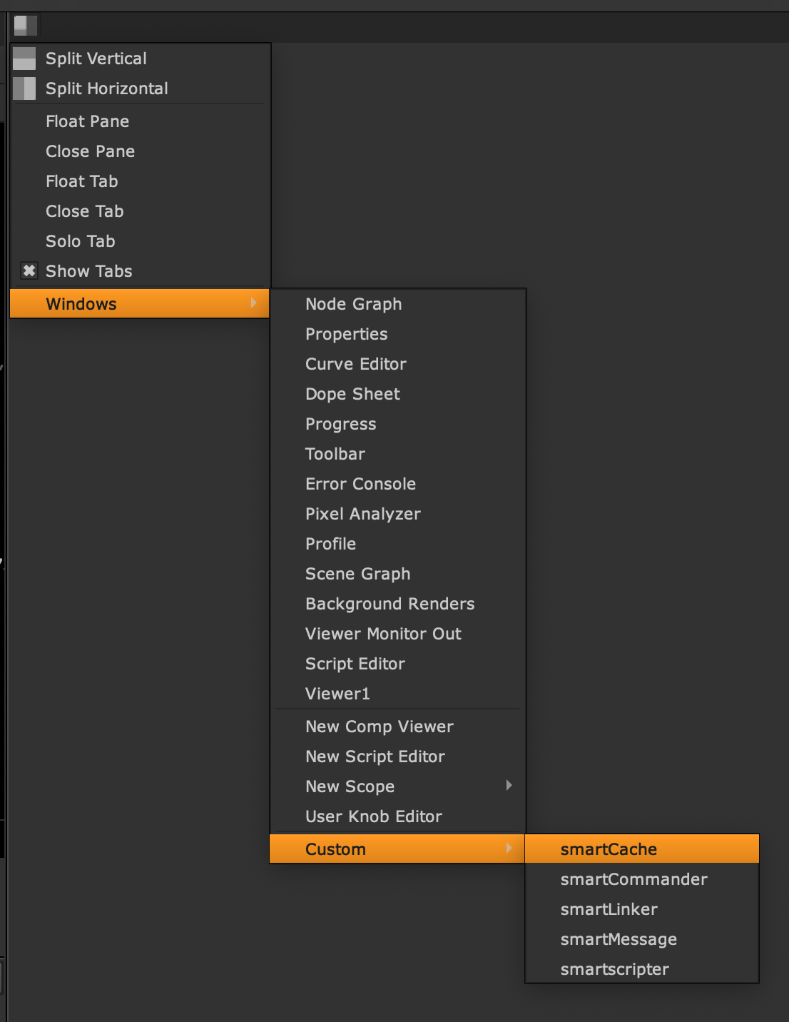 In the custom pane menu you will now find a ‘smartCache’ command. Clicking it docks the main window. You can save this as new layout to keep the smartCache window persistent in your layout.