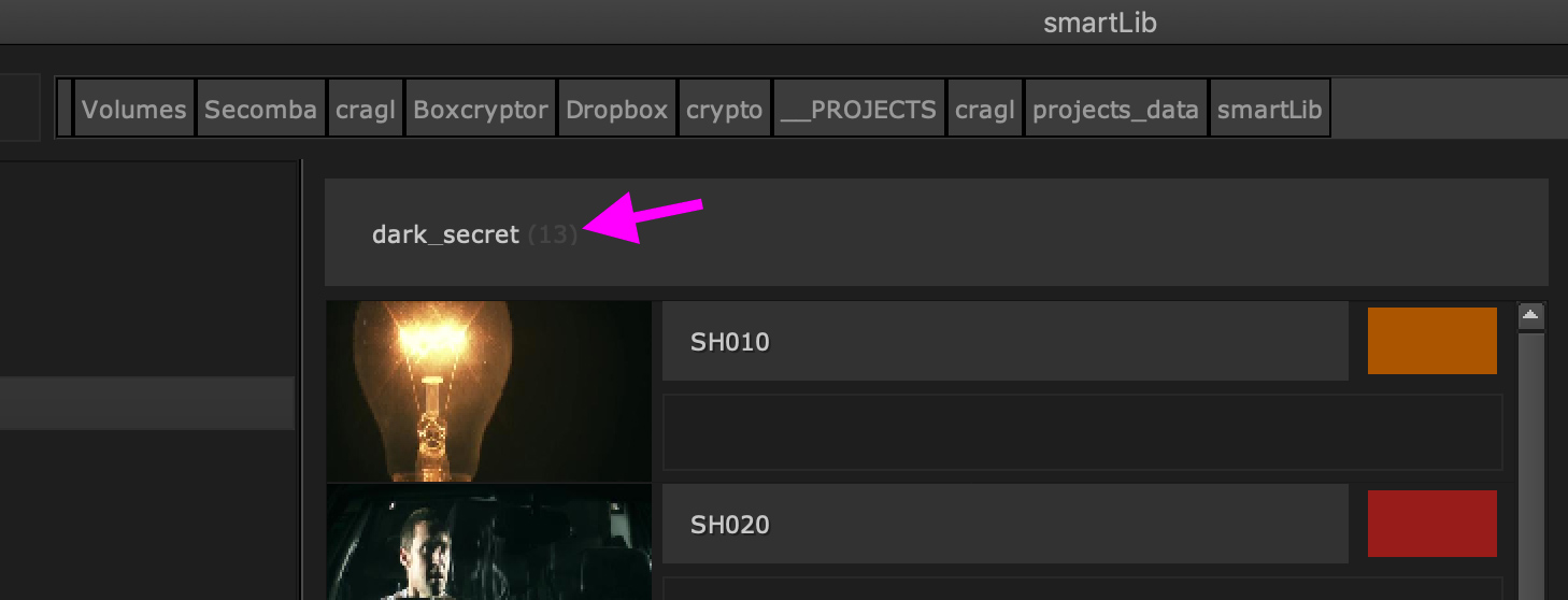 Collapse image sequences - In cragl->smartLib->settings in the general tab you can find the option “collapse image sequences”. This collapses image sequences in the current shot section and displays a sequence in this format - sequenceName.[1001-1100].exr. If you need to copy, cut and paste items you need to uncheck the collapse image sequences option in smartLib’s settings window.