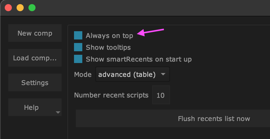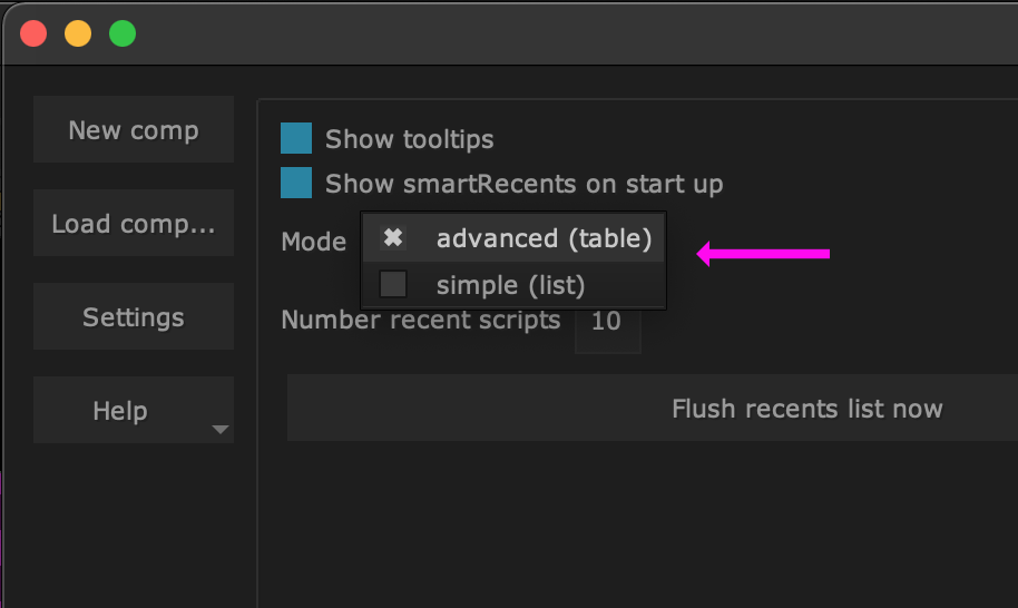 When loading a working file, this will now close the smartRecents main window before opening the Open-Append dialog. This leaves you with a better experience reaching Nuke’s built-in ‘open autosave’ dialog.